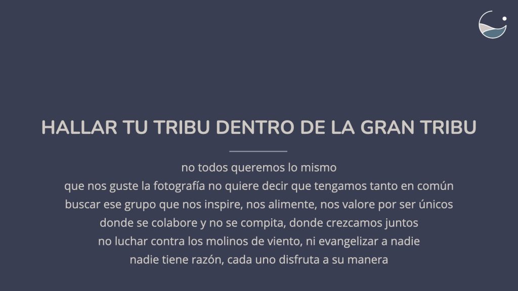 Muchas veces menciono la importancia de encontrar nuestra tribu dentro de la gran tribu de la fotografía. Ese grupo que comparta nuestros valores, en el que nos sintamos cómodos y que nos permita crecer y desarrollarnos mientras disfrutamos esta pasión y generamos vínculos sanos alrededor de ella.
