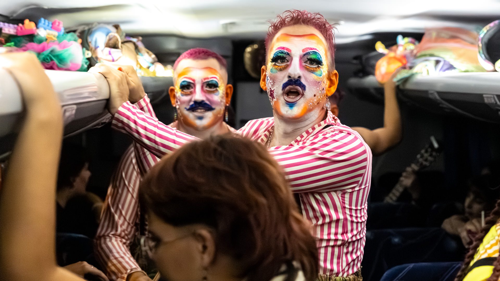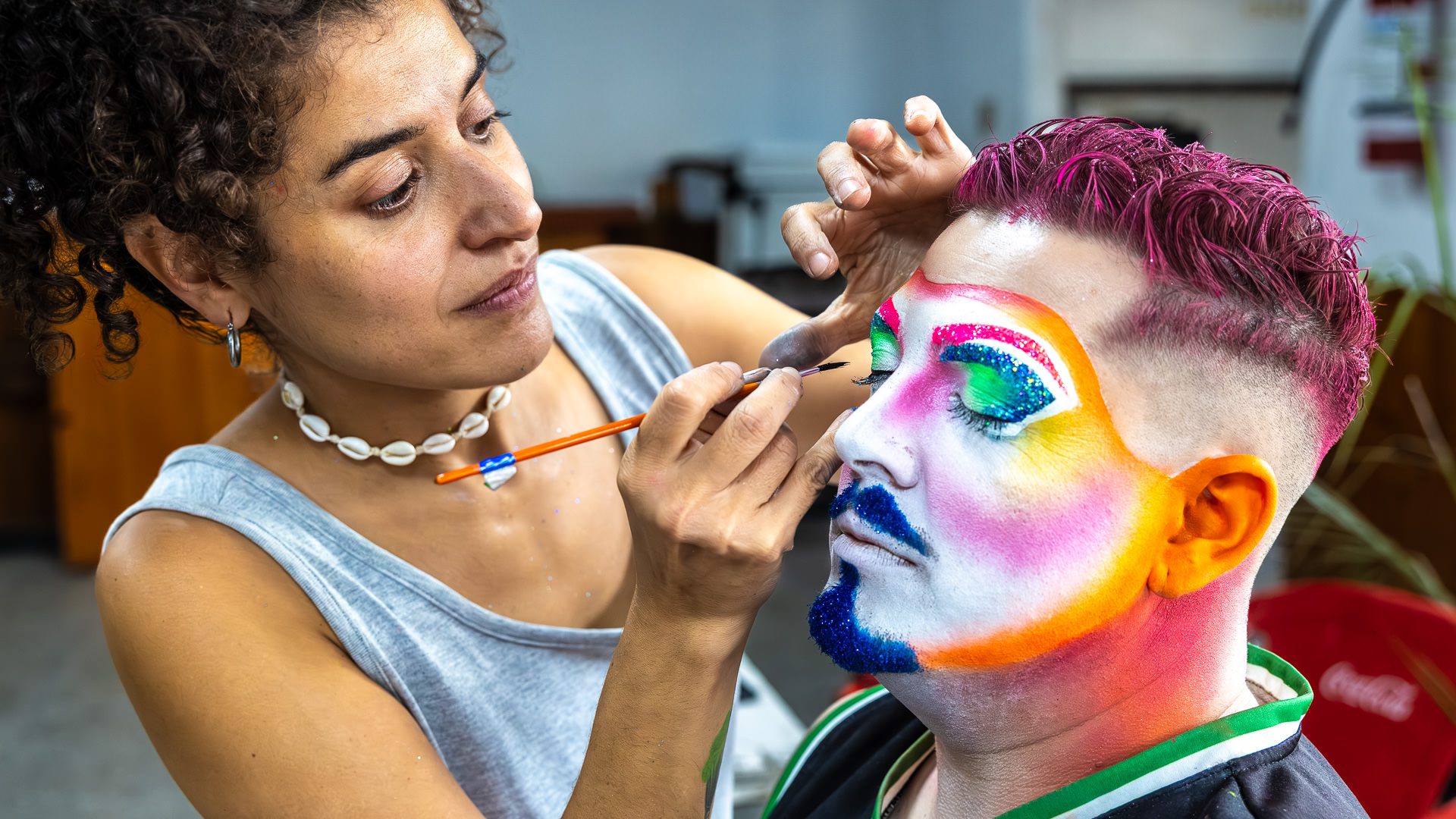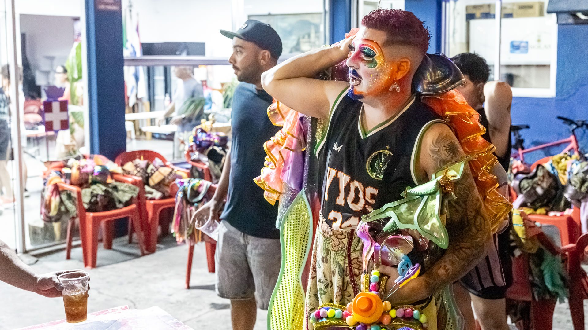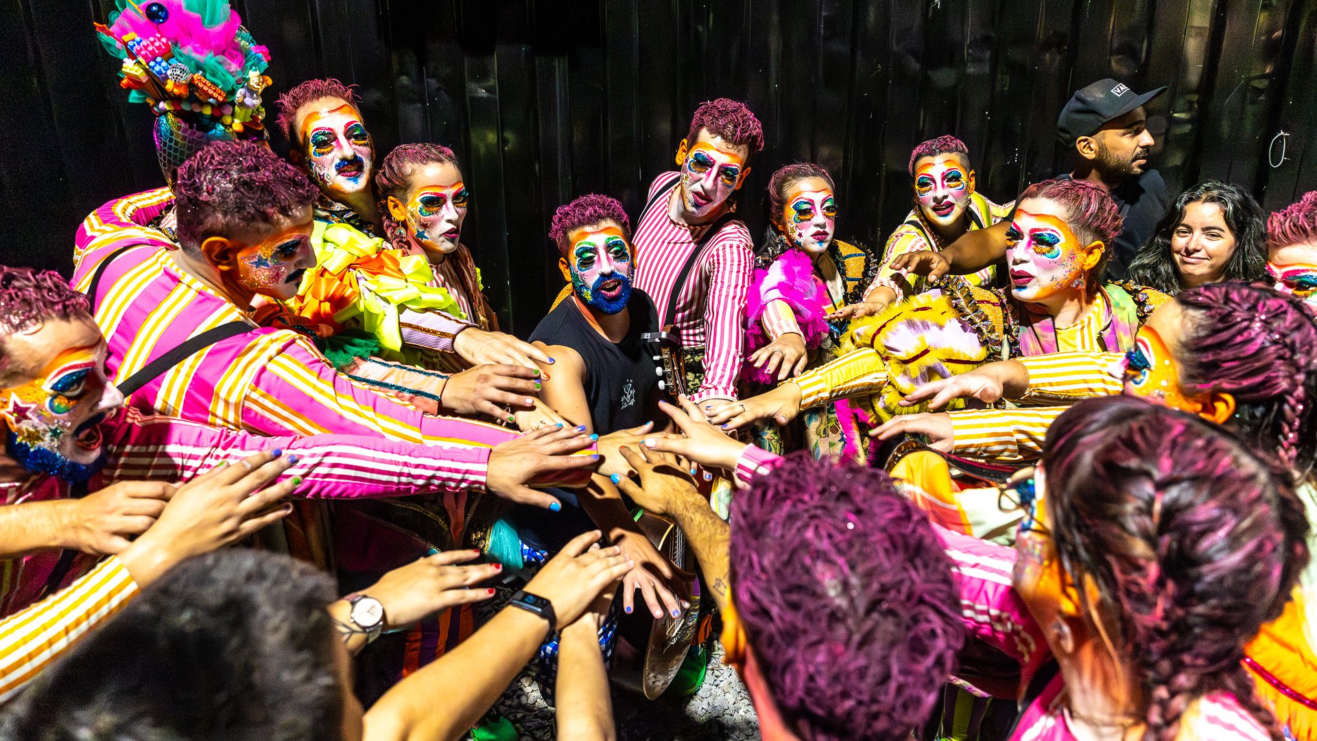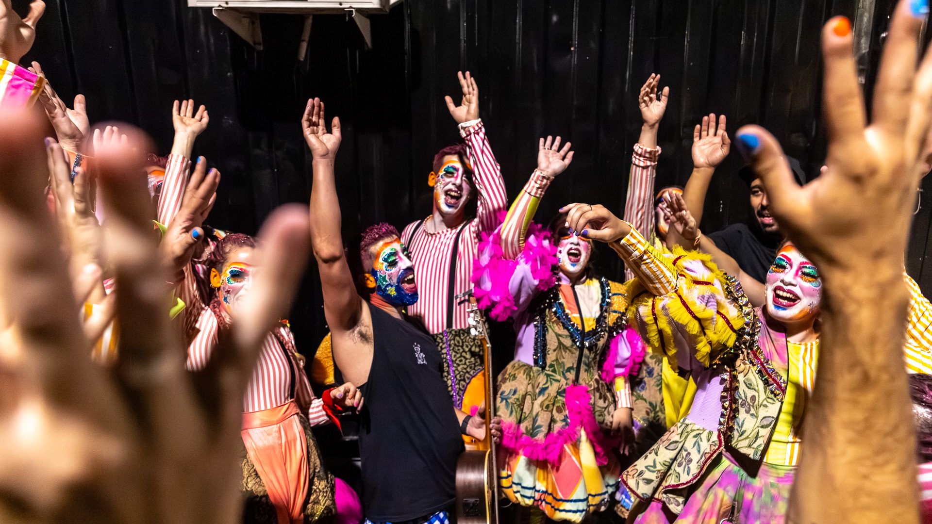 Backstage previous to the presentation of «Con eso no se jode» at the Teatro de Verano, in Club Ossolana.