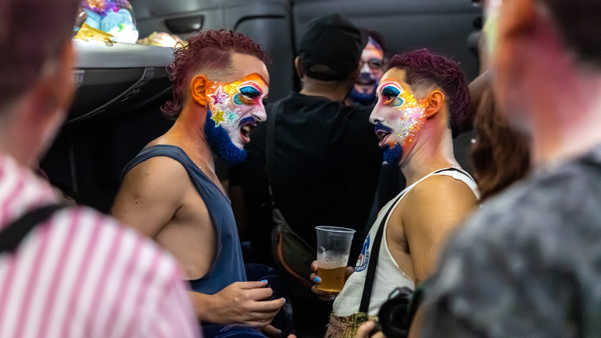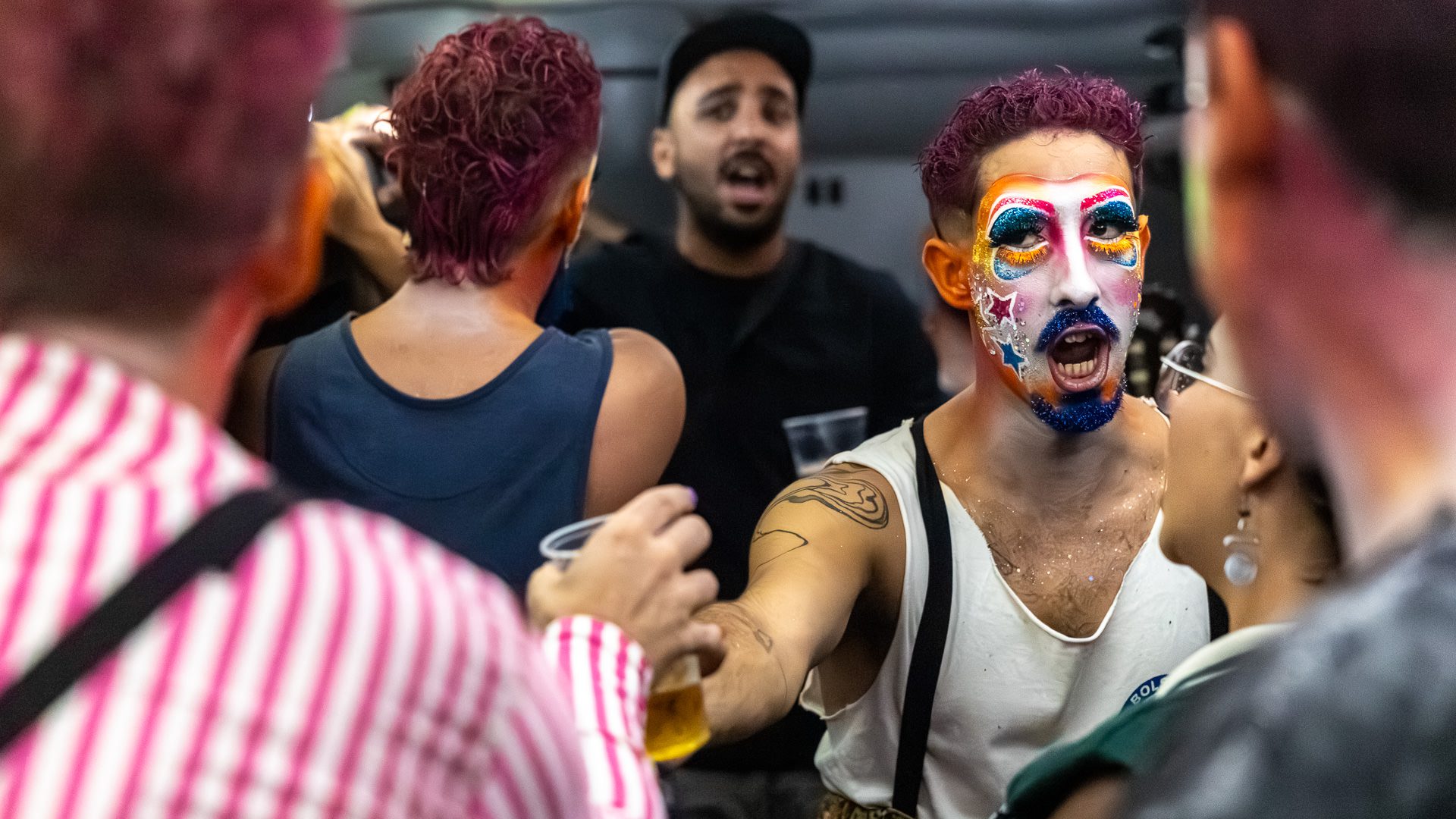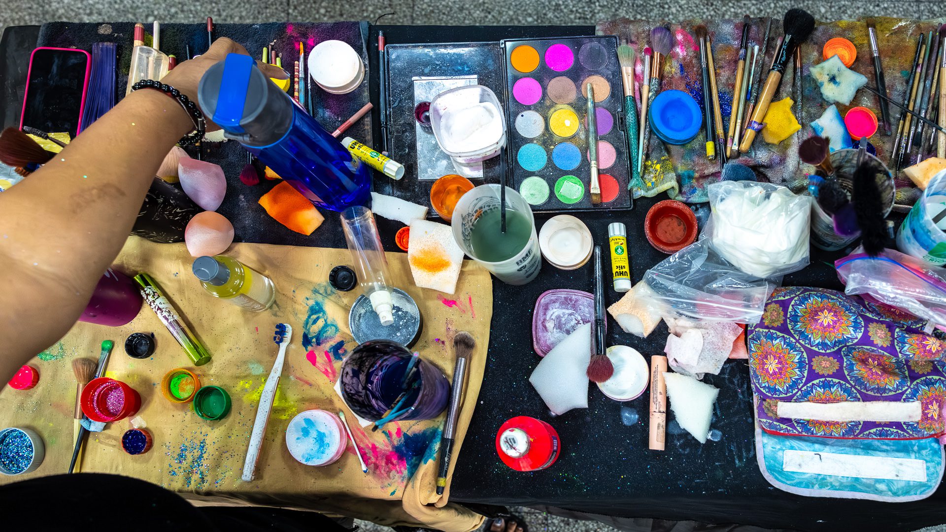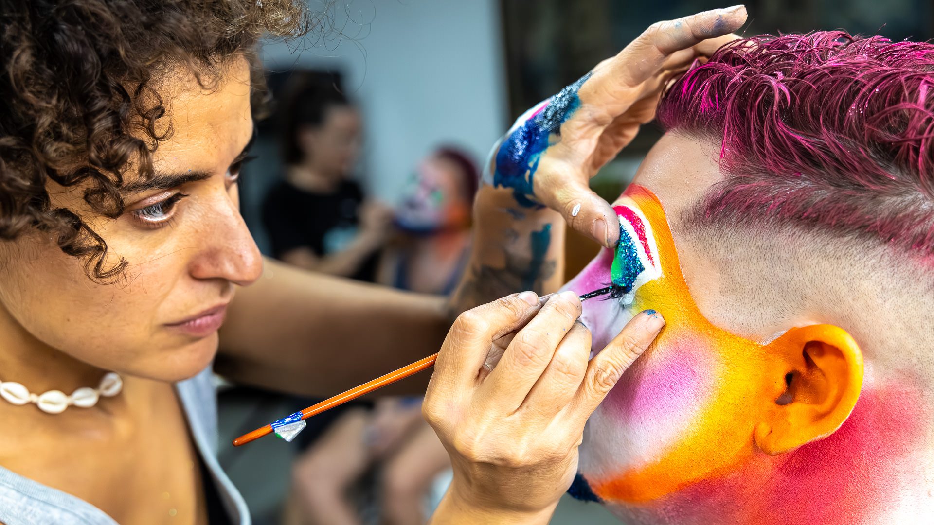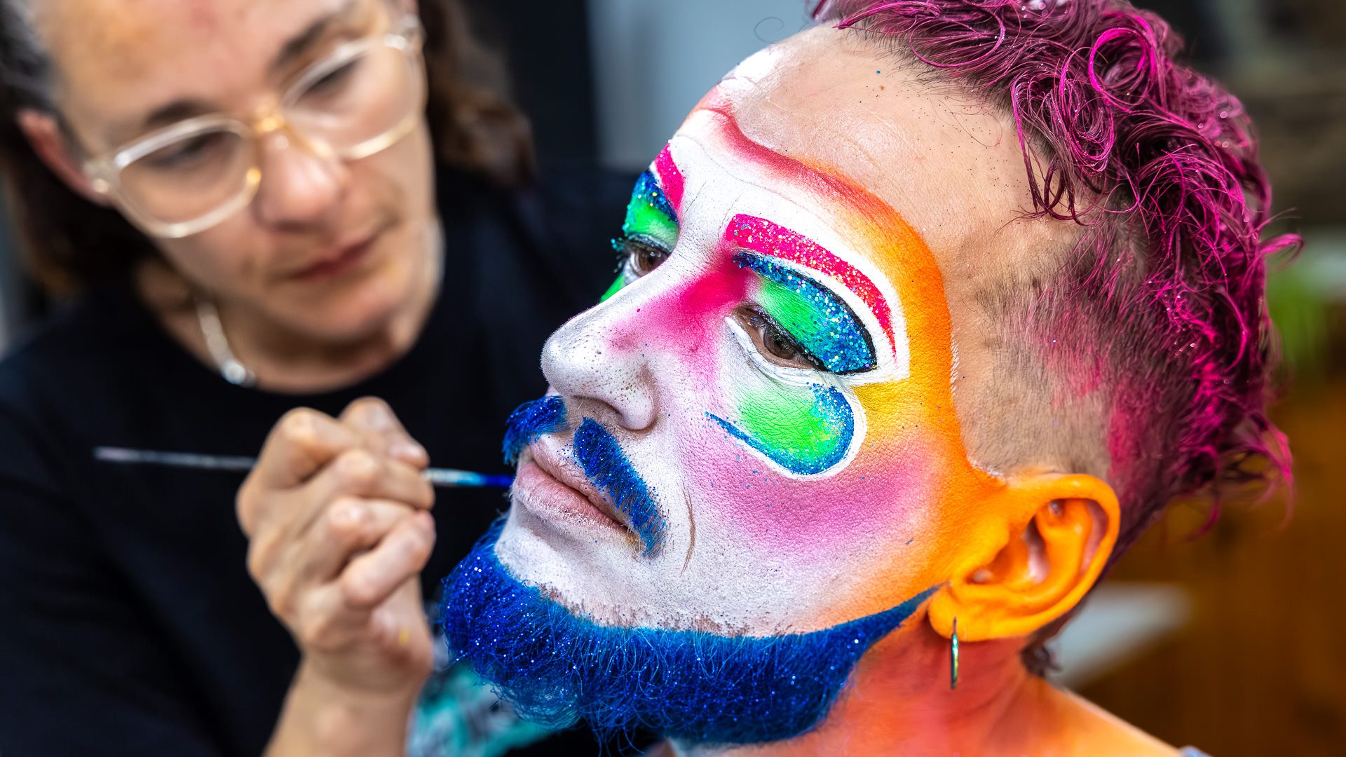 Backstage previous to the presentation of «Con eso no se jode» at the Teatro de Verano, in Club Ossolana.